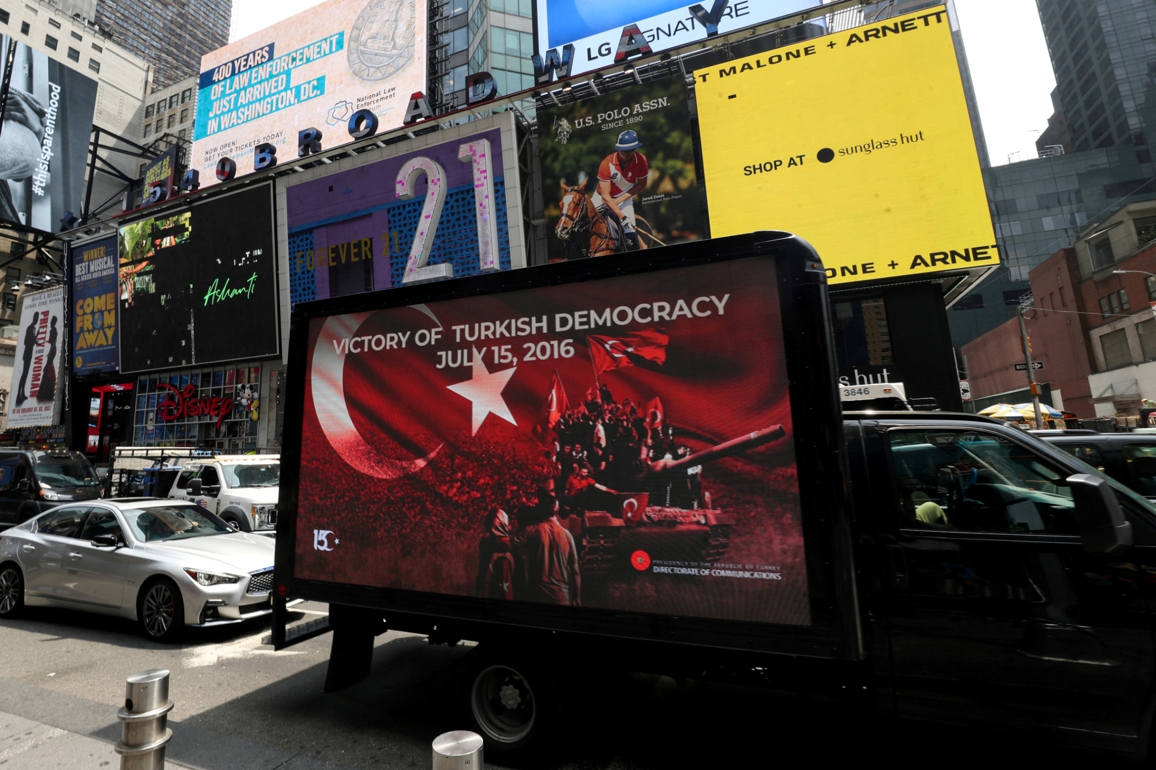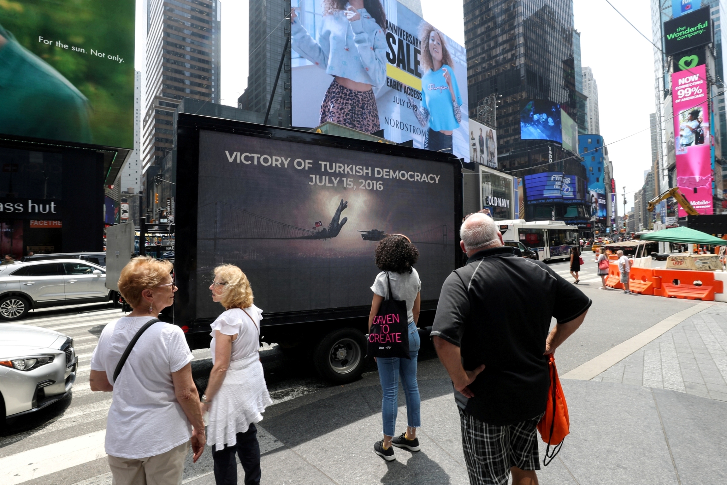 The Network belgeselinin afiş ve fragmanı ile 15 Temmuz darbe girişimi ve milletin direnişinden fotoğrafların yer aldığı led ekranlar taşıyan araçlar New York sokaklarında dolaştı.