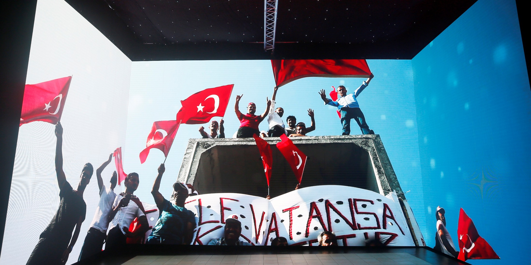 İstanbul Haydarpaşa Garı’nın Kadıköy’e bakan duvarında video haritalama (video mapping) teknolojisiyle 15 Temmuz darbe girişimi, milletin ortaya koyduğu mücadele ve şehitlerimiz görsel bir sunumla anlatıldı.